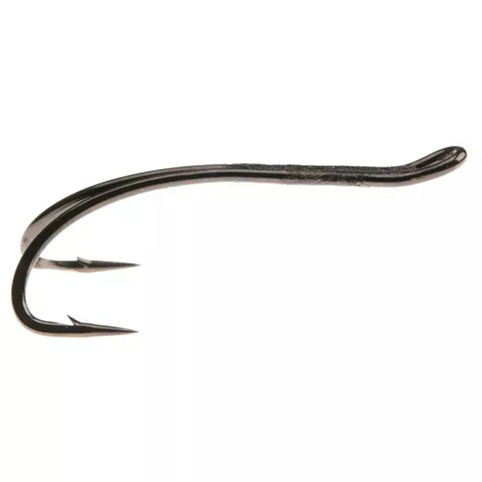 - Long shank double with a slight curve and a micro barb