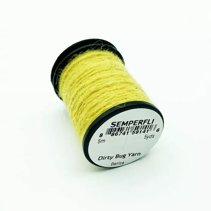 - Diry Bug Yarn can be used straight off the spool for larger flies or split the 2-ply yarn into single strands for smaller flies.