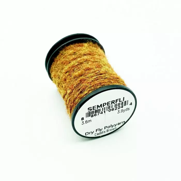 - Semperfli have developed the ‘dubbing on a rope products’, ready made yarns which can simply be tied and wound onto a hook. Multiple colours have been blended creating a 2-ply yarn