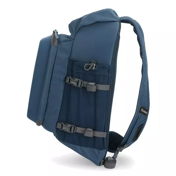 - Ergonomically shaped ambidextrous shoulder strap with tool attachment port and adjustable sternum strap