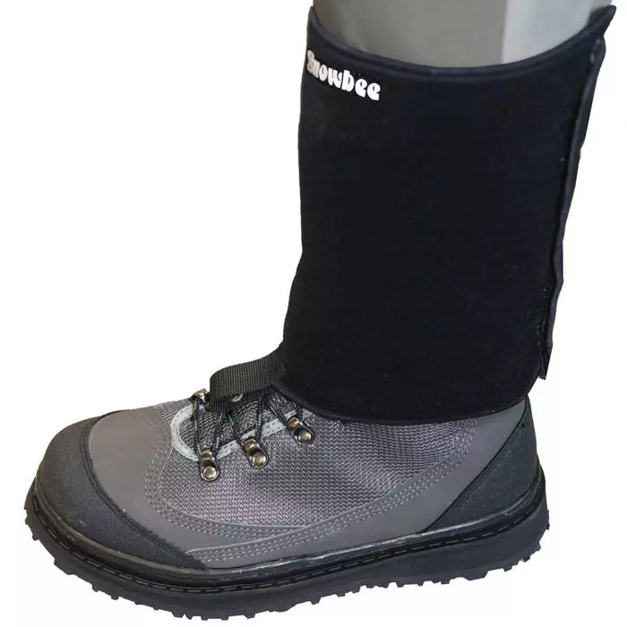 - The Velco compatible material allows the gravel guard to wrap securely around your leg and secure in any posistion, completely preventing fine sand and gravel entering your wading boots.