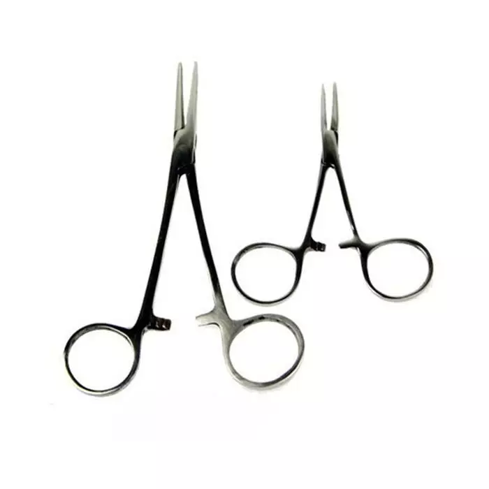 - Forceps with serrated blade.