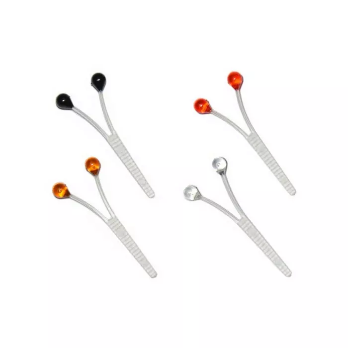 Sometimes, fly tiers struggle to get the eyes to sit properly on their fly and this can be very frustrating. The Easy Shrimp Eyes have been created so they are exactly the same length and will sit properly every time. The stem of the Y shaped design is flattened with groves and helps make tying these eyes ultra easy and will keep them firmly on your hook. The material of the Shrimp eyes has the same gravity as water so you won’t need to be concerned if your fly will sink or float due to the weight of the eyes.