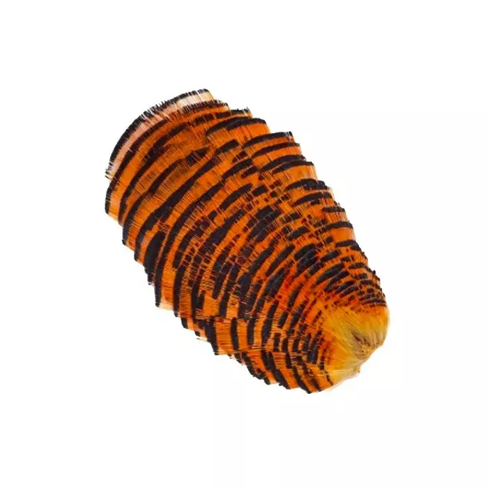 - The feathers are normally bright orange in colour and come in many different sizes, making it ideal for many different fly patterns.